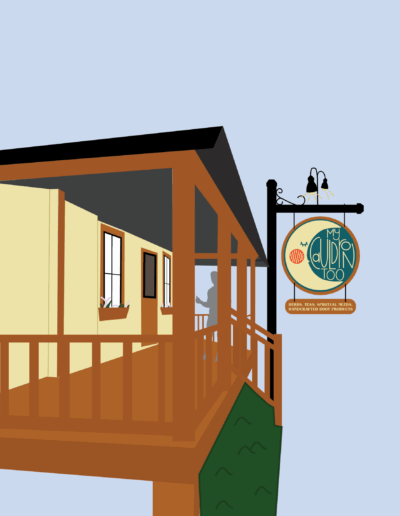 The design challenge for My Cauldron Too involves transforming a modest and easily overlooked storefront in historic St. Augustine into a whimsical and inviting destination for metaphysical enthusiasts and curious tourists alike. The goal is to lean into enchanting, witchy aesthetics while preserving the building’s historic charm, making the space both engaging and approachable.